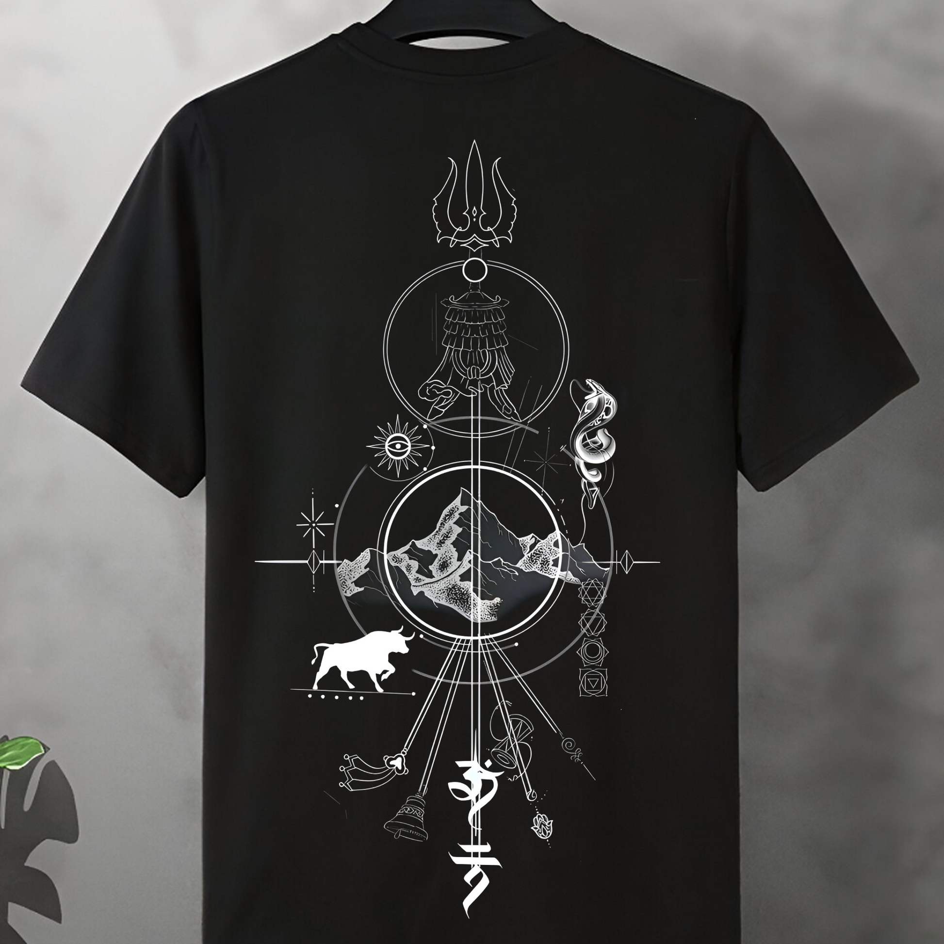 Designed with ancient power and modern grit, this piece carries the Trishul of transformation, the Third Eye of vision, the sacred bull Nandi, and the eternal peaks of Kailash — each element placed with intention, each line a prayer in motion.